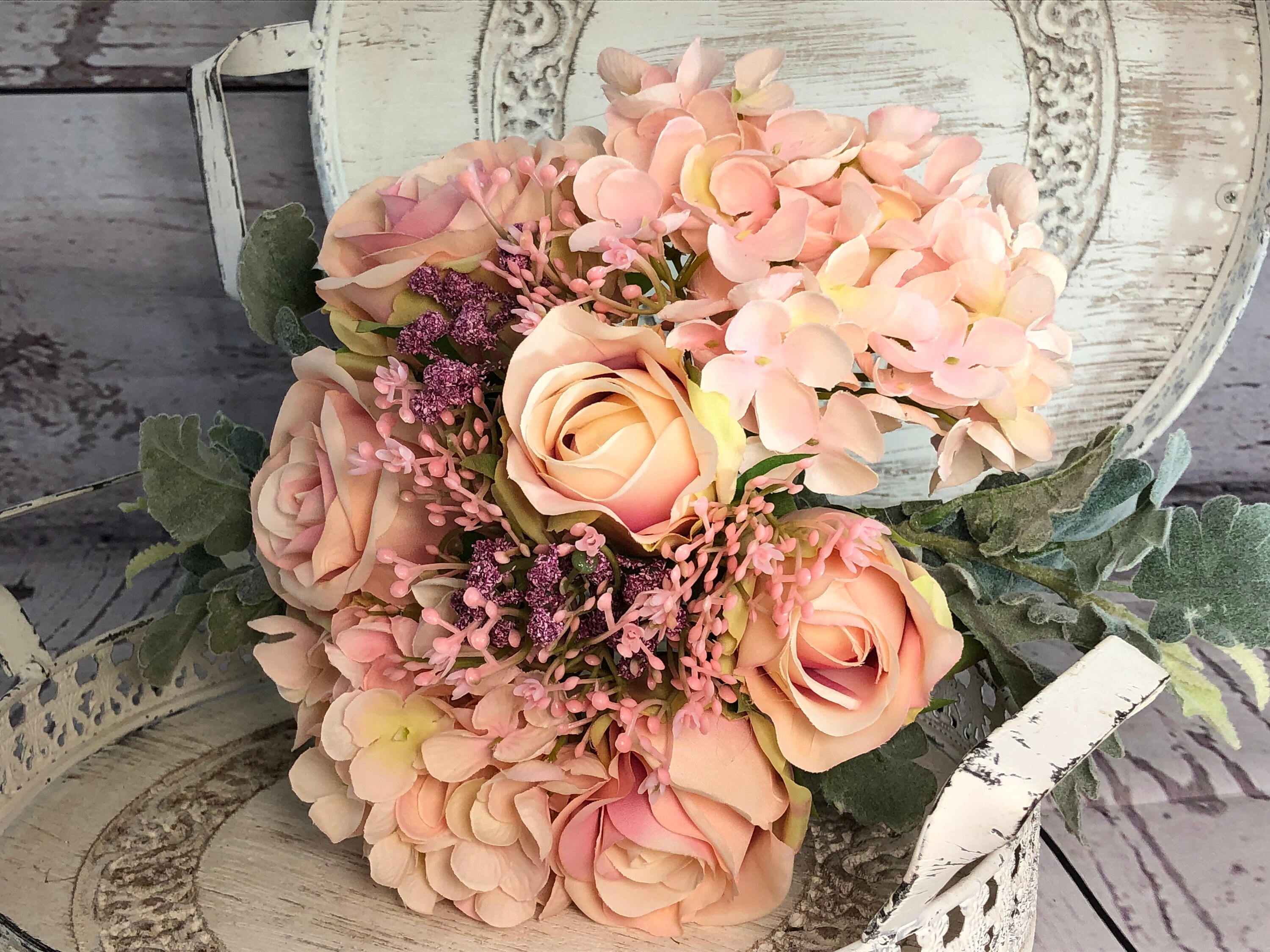 Roses Hydrangeas Bouquet Rose Hydrangea Silk Flowers Etsy Sweden